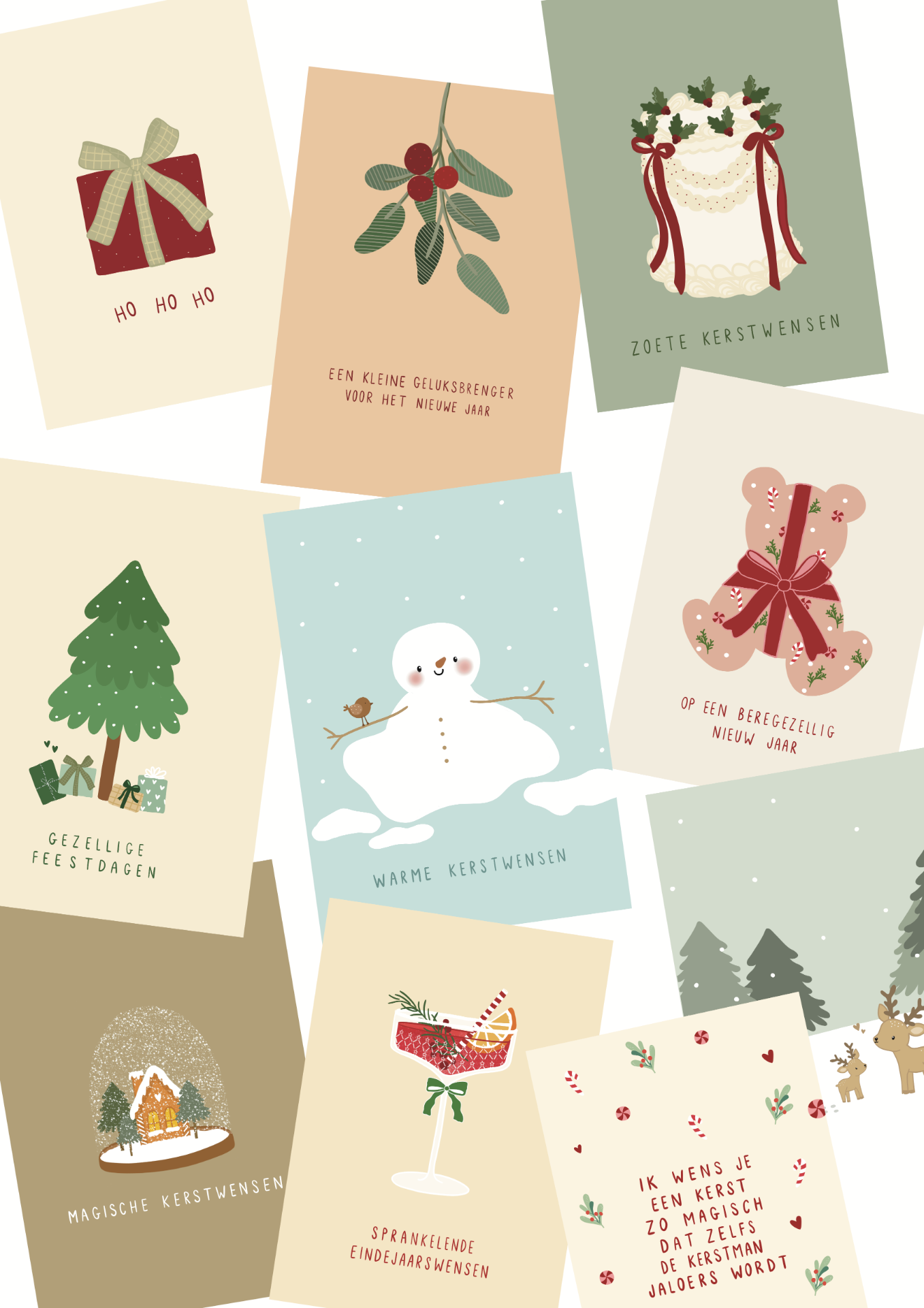 Kerstpakketje 10 kerstkaartjes (dubbele kaarten)