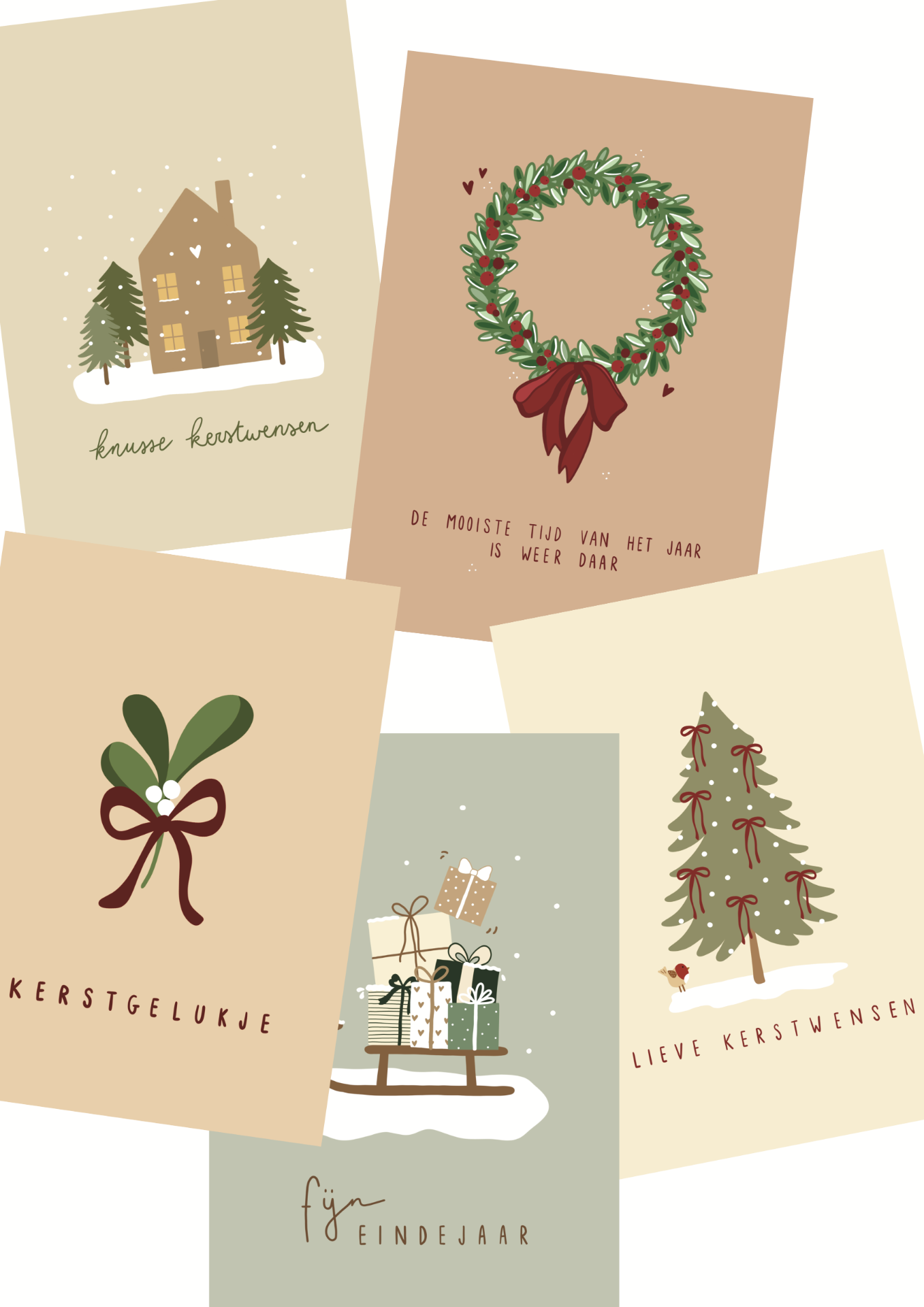Pakketje 5 kerstkaartjes (enkele kaartjes)